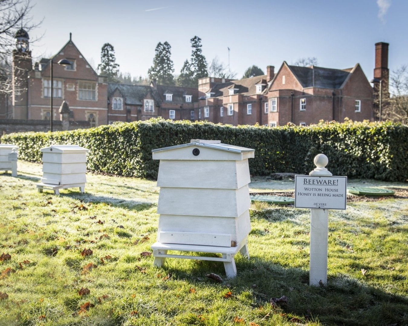 We’ve introduced the Wotton bees to our gardens—and they are truly thriving! We recognise the vital role bees play in the environment by pollinating plants, which in turn supports other animals and ecosystems. In addition to our bees, we’ve launched a rewilding project on our Western Lawn to enhance biodiversity across the Wotton Estate. You can even taste the results for yourself! We serve our delicious Wotton honey at breakfast and offer jars for sale, along with keepsake wax honey candles at reception.